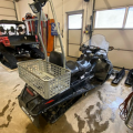 Ausgestattet ist der Motorschlitten mit einer Spurverbreiterung, hydraulische Eisbremse, Warnton, Rundumlicht + Rückfahrscheinwerfer, Transportkorb und Spikes.